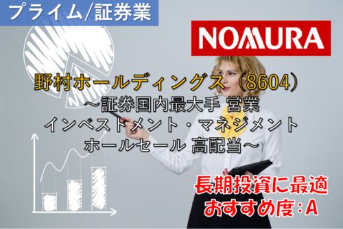 「野村ホールディングス 野村HD(8604)」の株式銘柄分析記事です。 株式投資するための最新の銘柄情報を掲載しているので、正しい投資判断をするのに役に立ちます。 最新の会社の事業内容や、決算情報、適時開示情報、株価情報、株価指標、配当情報や株主優…