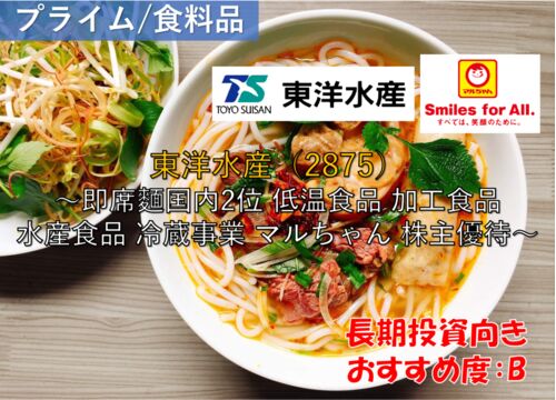 【株式銘柄徹底分析】東洋水産(2875)~即席麵国内2位 低温食品 加工食品 水産食品 冷蔵事業 マルちゃん 株主優待~