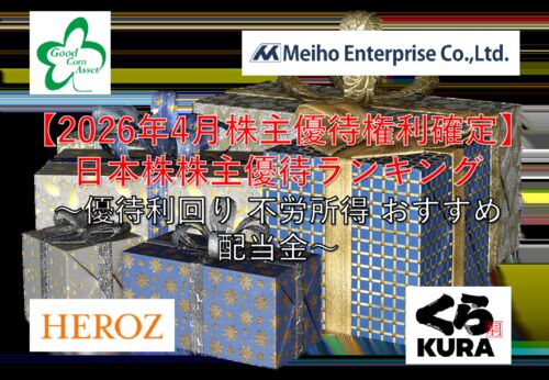 「2026年4月株主優待権利確定の日本株株主優待ランキング」記事です。 4月に株主優待権利が確定する銘柄の中でおすすめの銘柄を紹介しています。 4月に確定する配当利回りもまとめていますので、高配当な銘柄を探すこともできます。 是非参考にして頂き、資…