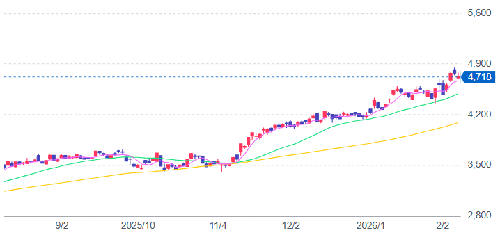 6か月チャートで見ると、10月までは横ばいでしたが、それ以降は上昇しています。