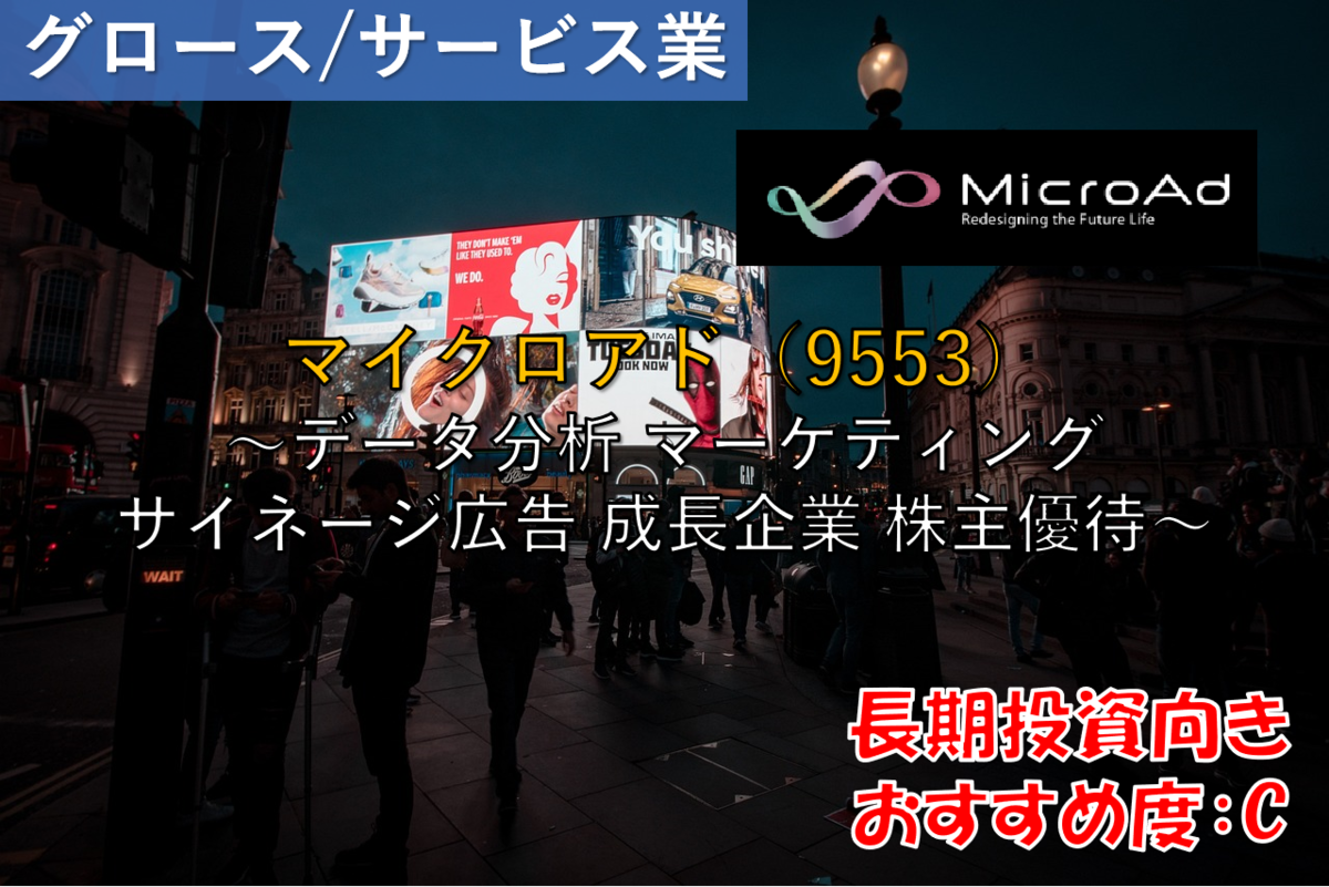 今回は、データ分析活用のマーケティング支援、屋内外サイネージ広告配信を手掛けるマイクロアドについて調査をしました。